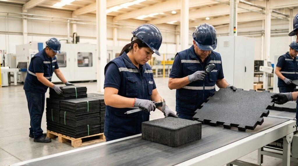 Heavy-duty rubber mats and flooring systems suitable for factories, warehouses, workshops, and production areas.